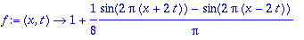 f:=(x,t)->1+1/(8*Pi)*(sin(2*Pi*(x+2*t))-sin(2*Pi*(x-2*t)));