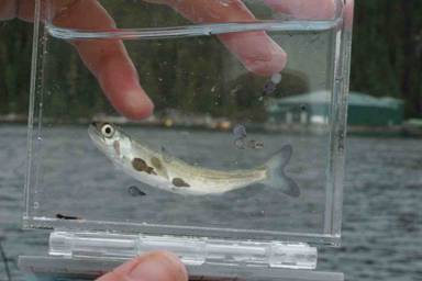 Young salmon infested with lice. Copyright: Alexandra Morton